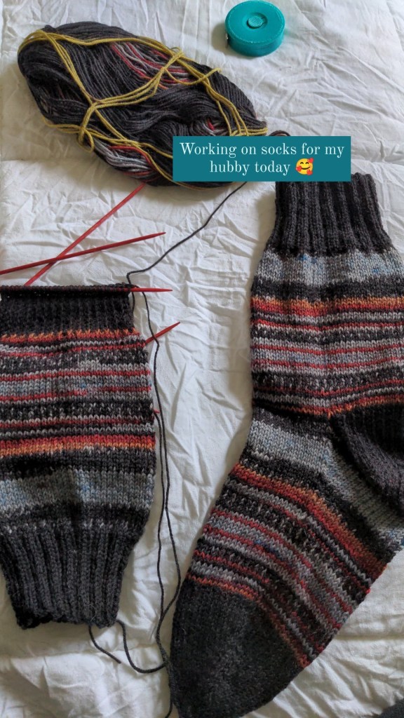 Henry’s socks, from a photo on my instagram story! I love this self striping yarn.