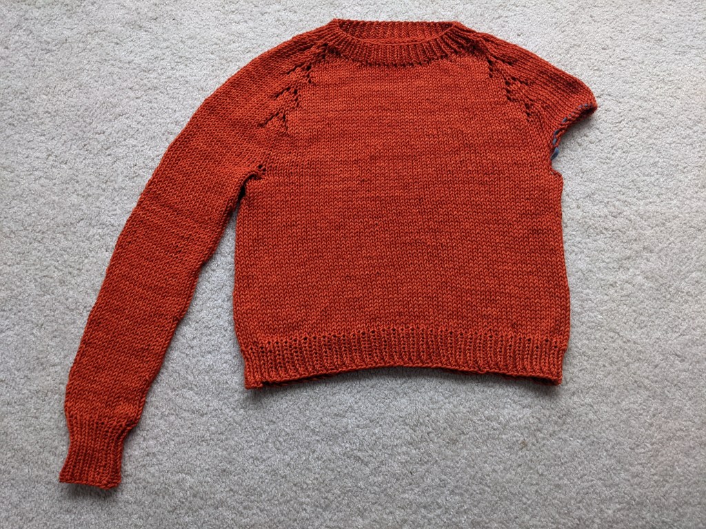 Next, I am still stranded on sleeve island with my Felix Pullover. For some reason, I just haven’t sat down and finished the second sleeve! Once I finish this sleeve, this will mark my first ever knitted sweater. I’ve knitted a ton of things but never a sweater, so I really wanted to find an easy and quick pattern to whip up to learn more about sweater design and structure. This sweater is made on size 10 US needles, so finishing this last sleeve shouldn’t take long once I actually get down to it!